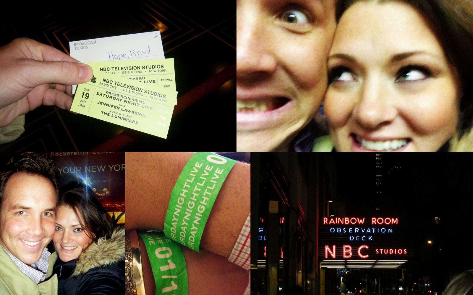 Brad got us tickets to Saturday Night Live for Christmas. I was so excited!! We went to the Jennifer Lawrence musical guest The Lumineers. We were one of the chosen few to get to sit on the floor right in front of the stage. They took us on a little tour behind the scene's where we waited to be seated.One of the best nights ever!
